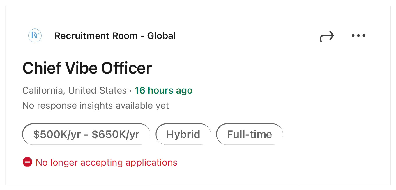 I’ve either seen these open roles on LinkedIn or been sent the job listing. After you roll your eyes at the absurdity — which, fair, please do — I want to make the case that these titles are worth paying attention to. Not because they’re ridiculous. But because they’re signals. And right now, in this job market, signals are about all we’ve got.